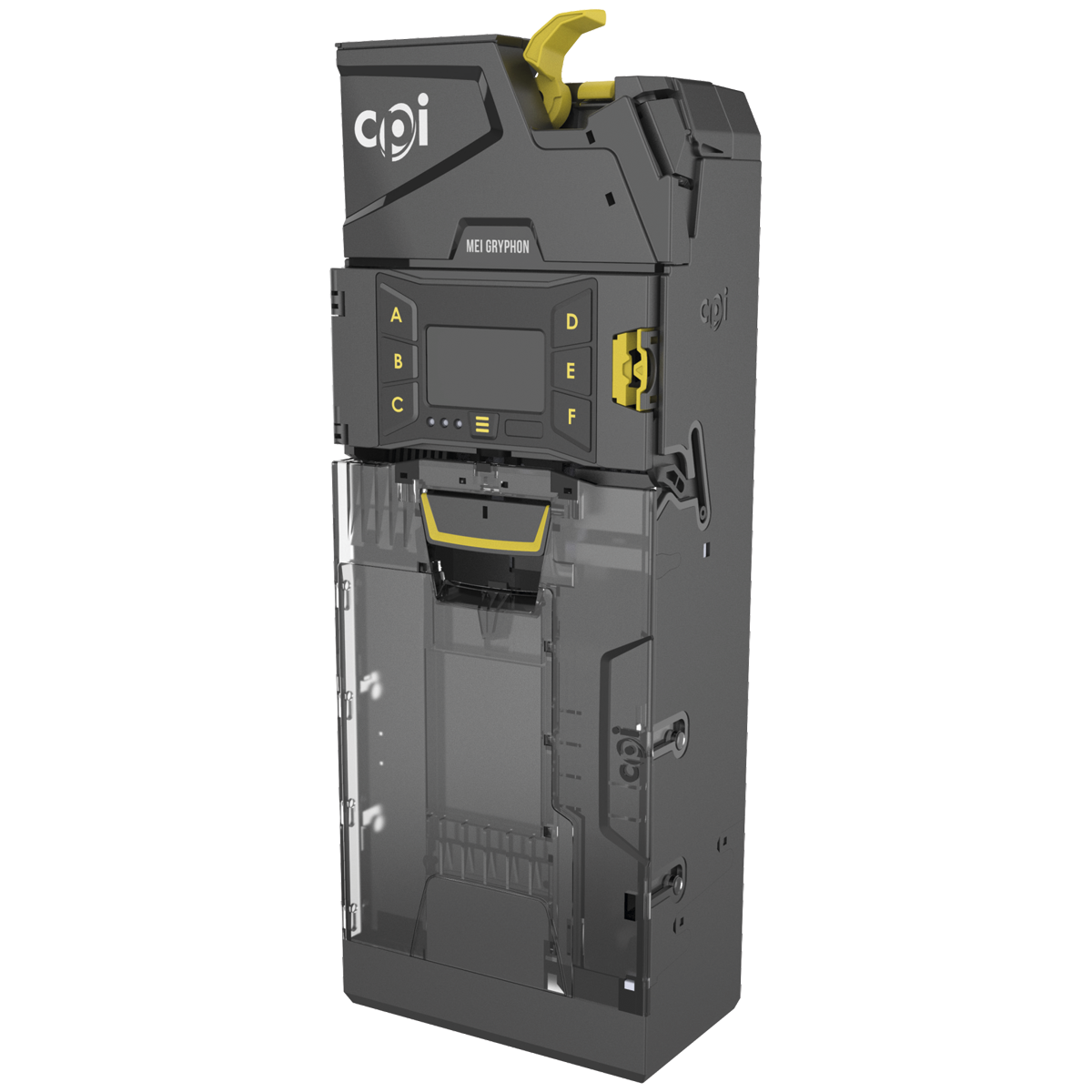 Los aceptadores de monedas Gryphon han demostrado prácticamente en todo el mundo que son los más fiables y seguros, tienen la mayor rapidez en aceptación de monedas y entrega de cambio. Cuenta con 5 tubos para almacenar las monedas para dar el cambio. Se puede actualizar por medio de una memoria USB. Manejo intuitivo. Tasa de aceptación de más del 97%.