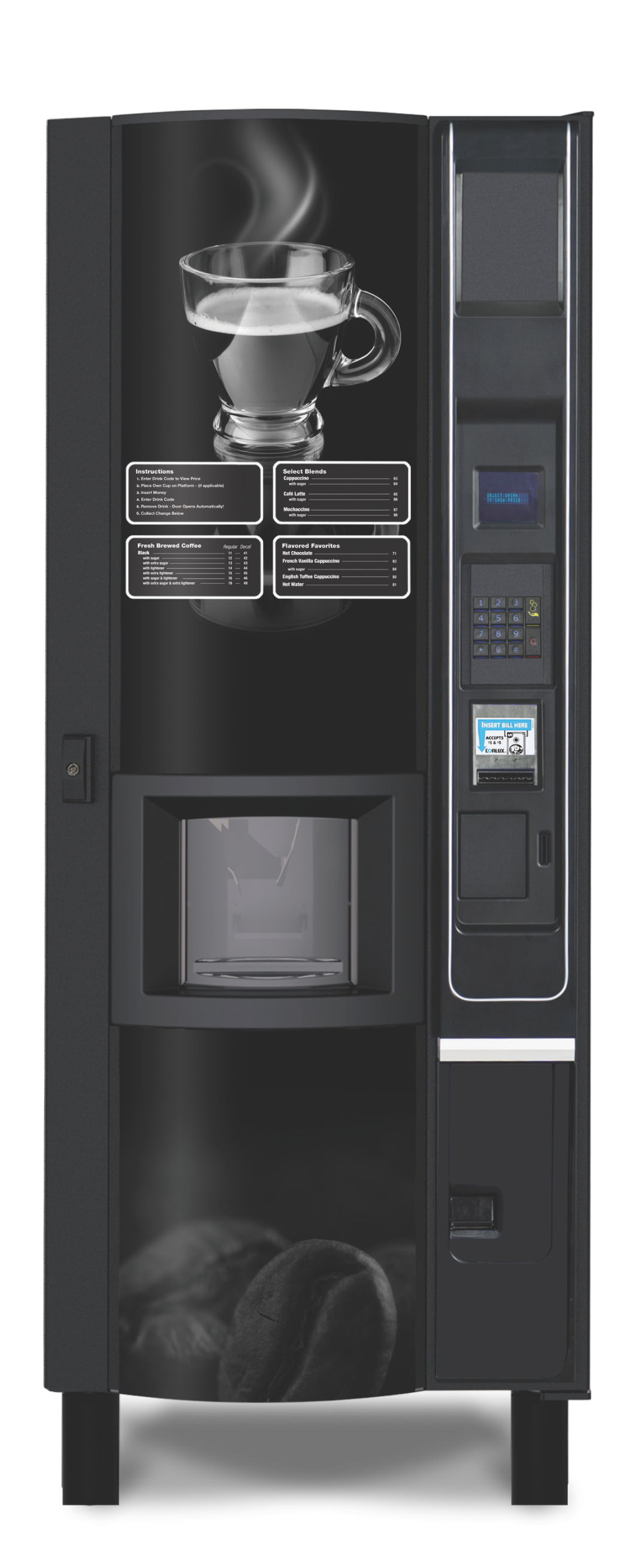 Máquina de Bebidas calientes EVOKE marca U.S.I. Una máquina a de café que no guarda residuos orgánicos funciona únicamente con polvos incluyendo para el café tipo americano.